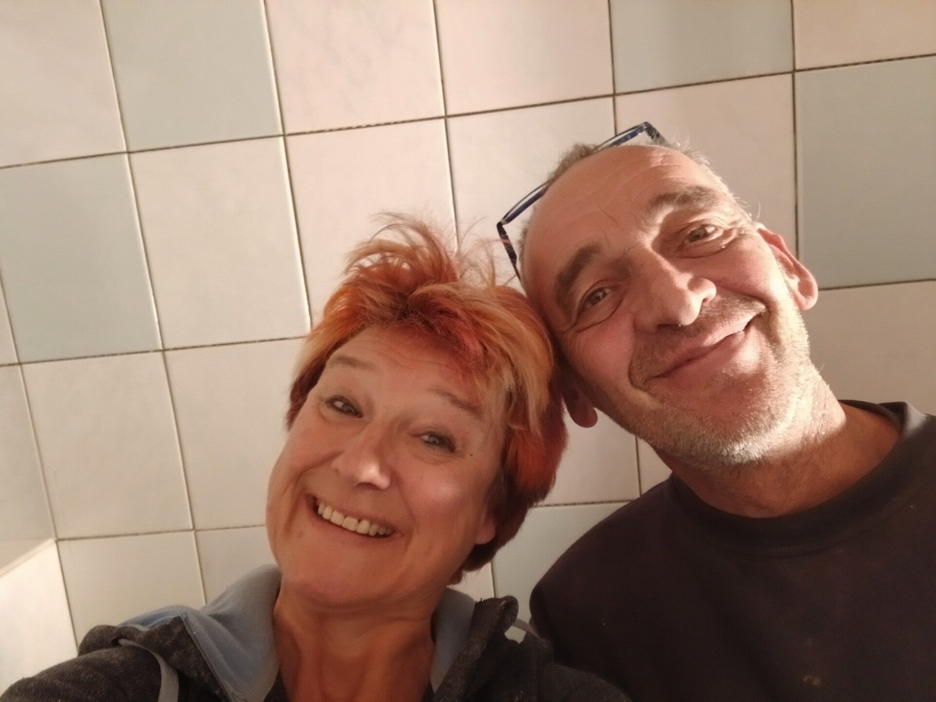 Inmiddels zijn de douches en de toiletten betegeld, gevoegd en geschilderd.